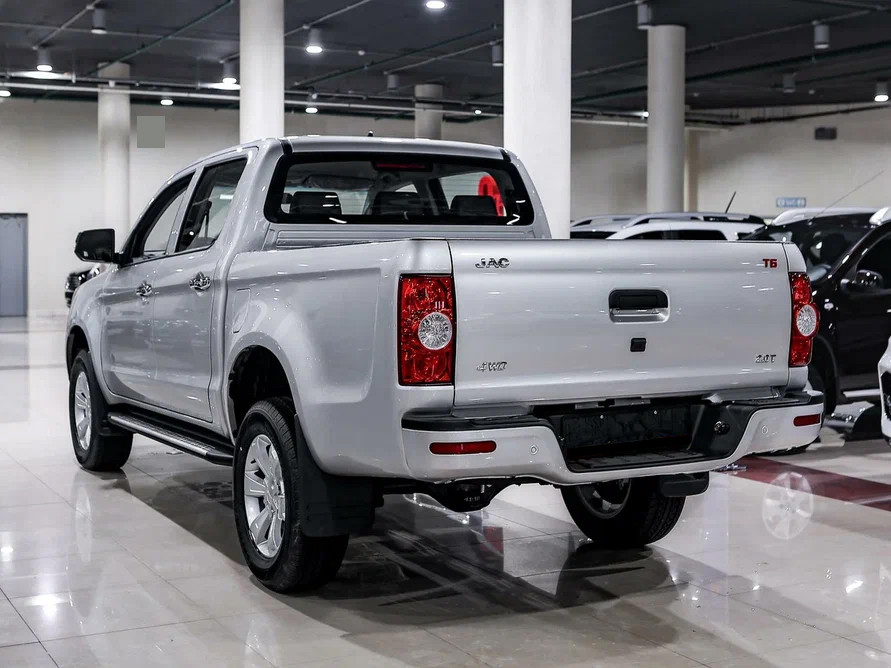 Внешность китайского пикапа JAC T6 в действительности внушительна. Автомобиль выглядит мощно и немного грозно. Все из-за размеров пикапа. Достаточно только взглянуть на 17-дюймовые диски и высокий клиренс. По мощному внешнему виду сразу становится понятно, что автомобиль проедет не только по городским дорогам, но и в труднопроходимых местах.